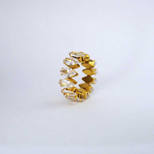 Adorned with opulent 18k PVD gold plating, our rings exude a radiant and timeless charm. This lustrous finish adds a touch of opulence while guaranteeing exceptional durability, ensuring each ring remains a cherished accessory.